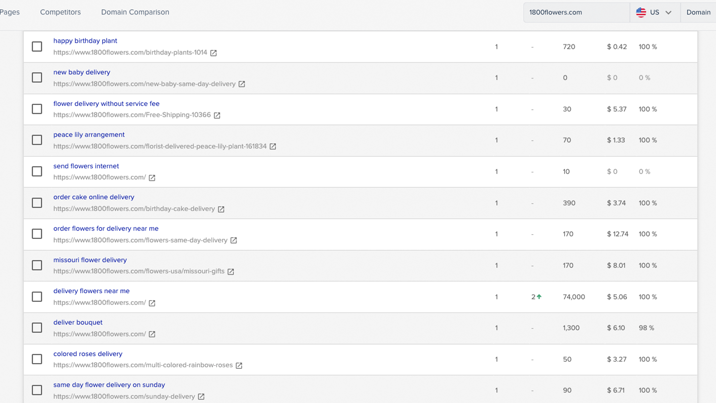 - Сравнете класирането на ключови думи на два или повече домейна